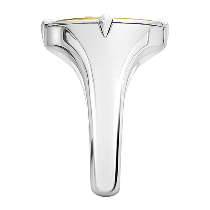 La bague foi, amour, espoir resplendit avec son argent massif 925/1000 habillé d'un subtil plaqué or de 3 microns. Sa finition polie et brillante sublime l'éclat du gris et du jaune qui s'entrelacent harmonieusement. Arborant une allure unisexe, cette pièce précieuse de 19 mm de hauteur et de largeur se pare d'un plateau rond orné d'un oxyde de zirconium. Son poids délicat de 12 grammes la rend aussi confortable que fascinante. Laissez-vous envoûter par cette fusion de matières nobles qui incarne élégance et symbolisme.