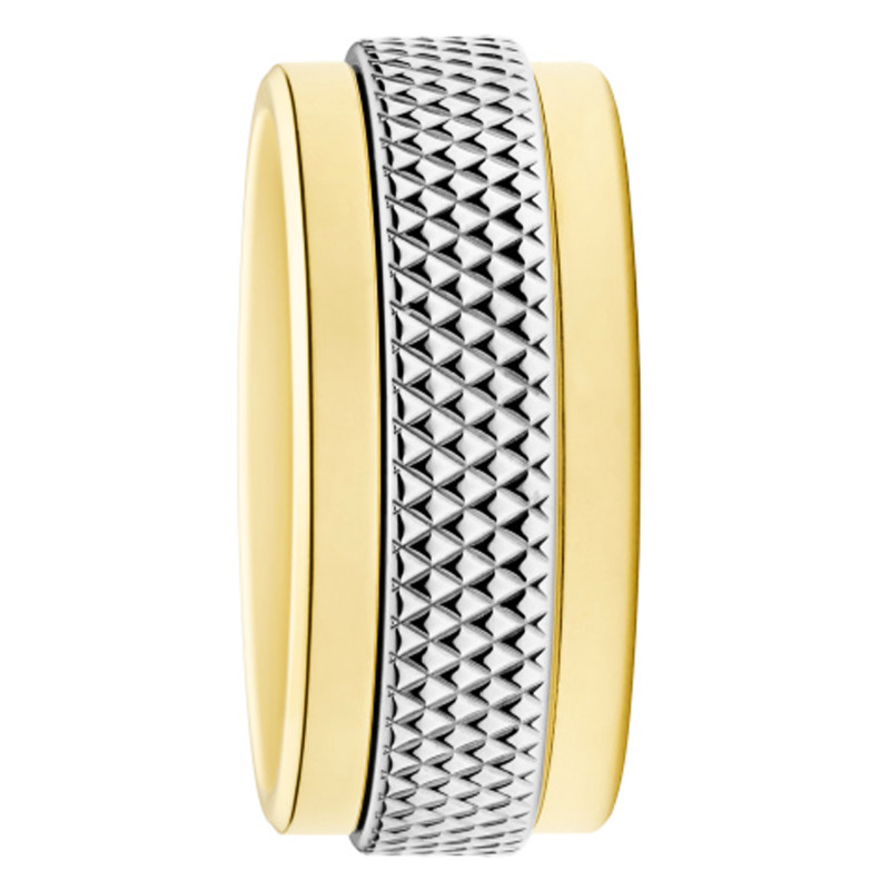 Découvrez la Bague Knox Bicolore, une œuvre d'art pour Homme en acier inoxydable aux couleurs harmonieuses entre gris et jaune. La finesse de son motif losange contraste magnifiquement avec son fini doré poli. Cette bague, large de 25 mm, habillera votre main d'un éclat qui attire l'œil et capte la lumière. Garantie 2 ans, elle est synonyme d'assurance et de sécurité.