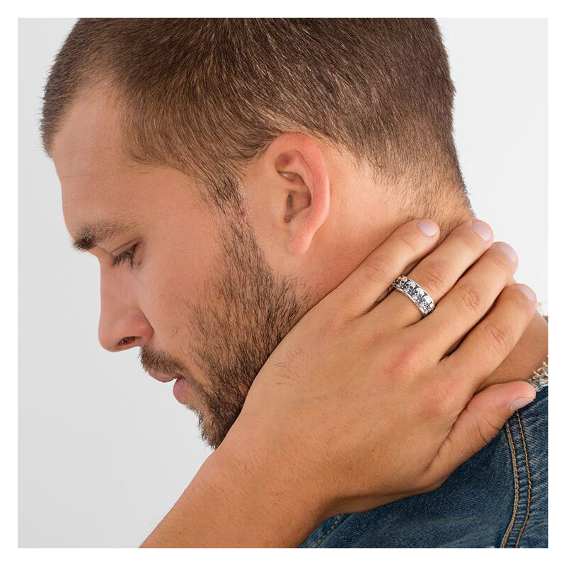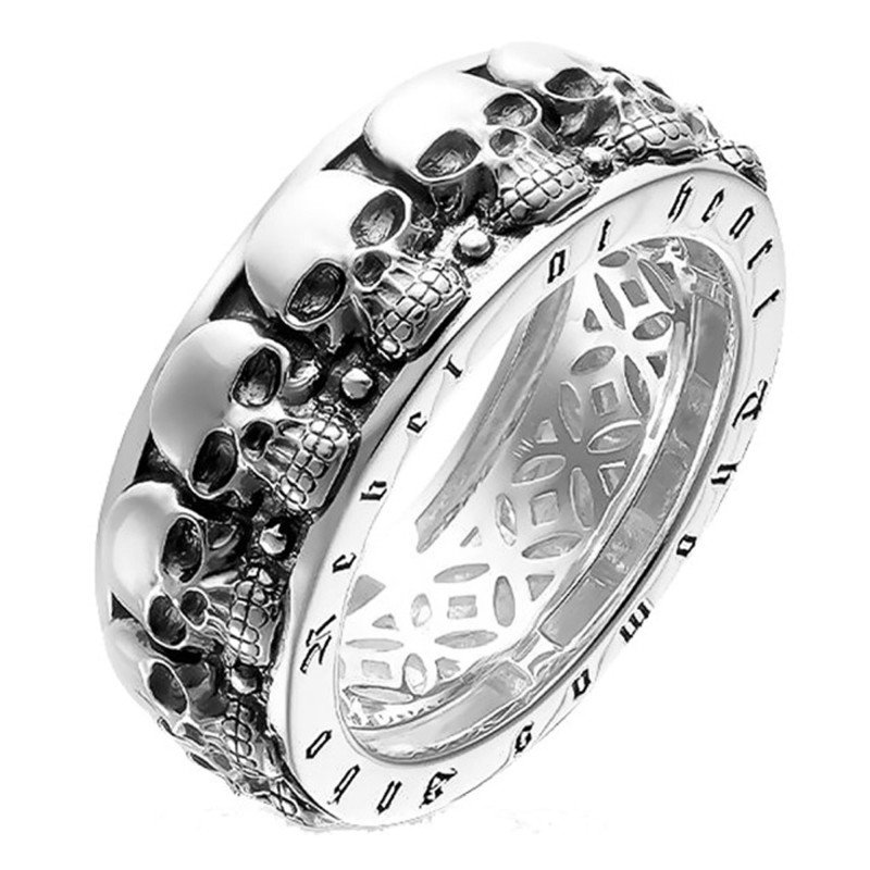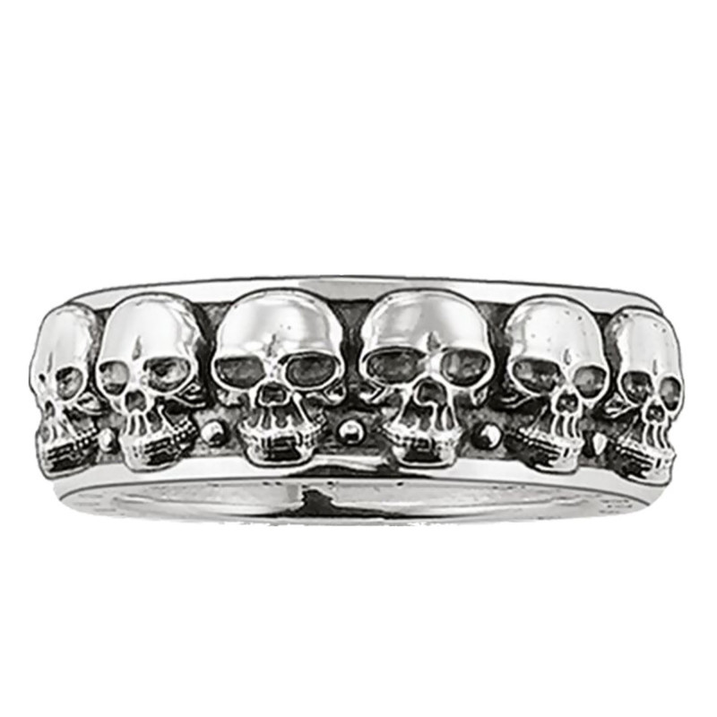 Envoûtez votre style avec la Bague Tête de Mort en argent massif 925/1000. Ce bijou, conçu pour l'âme audacieuse, arbore une rangée de crânes minutieusement sculptés, une véritable ode à l'élégance gothique. Avec une largeur et une épaisseur de 7,00 mm, cette pièce unique vous promet une allure mystérieuse et raffinée. La couleur grise de l'argent apporte une touche de charme intemporel. De plus, une garantie de 2 ans assure la pérennité de votre acquisition.