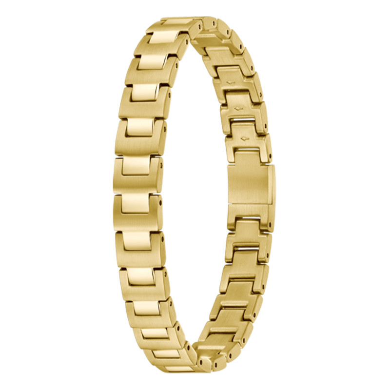 Découvrez le Bracelet Candor Jewelry, une pièce d'exception en acier à la teinte resplendissante de l'or. Sa longueur de 19 cm épouse parfaitement le poignet de l'homme moderne, tout en révélant une finesse polie et brillante. Arborant un poids de 39,40 g, cet écrin de métal précieux se fait le messager de votre éclat. L'inscription BOSS ajoute une touche de prestige.