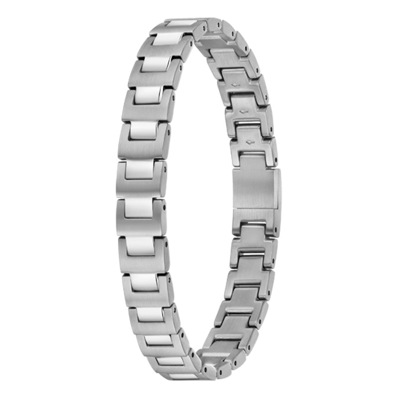 Le Bracelet Candor Jewelry en acier gris se dévoile dans un éclat de lumière grâce à sa finition polie et brillante, faisant danser les reflets sur son acier noble. Long de 19 cm, il épouse délicatement les contours du poignet masculin, incarnant la force avec grâce. Avec un poids total de 39,40 g, chaque maillon soigneusement gravé du nom BOSS raconte une histoire de puissance et d'élégance.