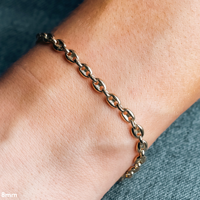 Dans le but d'embellir votre apparence, Manillon vous propose ce beau bracelet chaine en or blanc 750/1000 (18K). Il arbore une maille grain de café creux de couleur dorée à la finition brillante. Ce bijou mixte s'étend sur une longueur de 19 cm et se ferme au moyen d'un mousqueton classique. Vous pourrez porter ce bracelet chaine grain de café à tous les types d'événements.