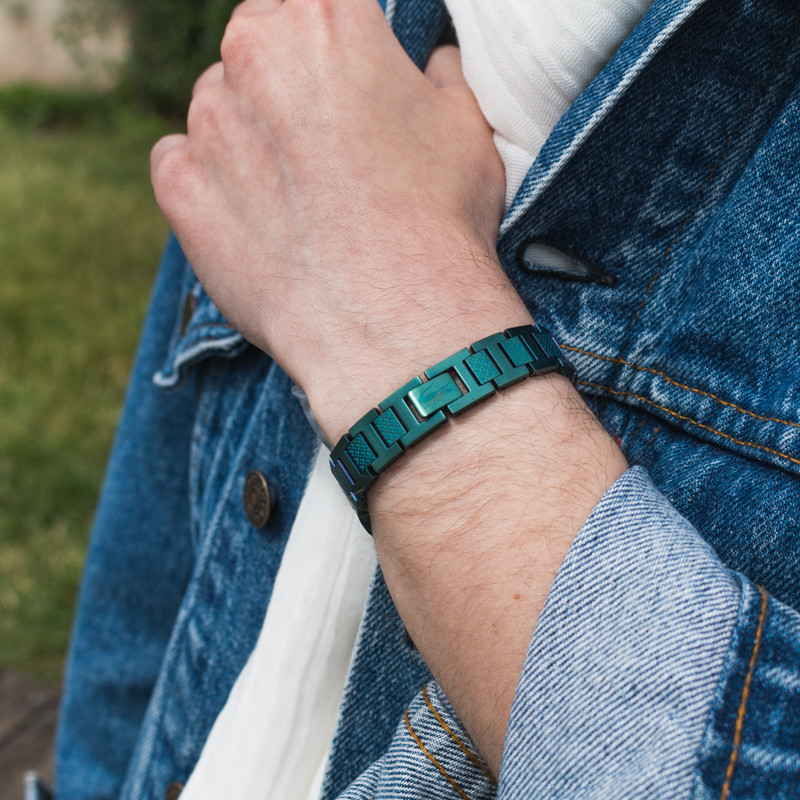 Avec sa matière solide et son design classe, ce bracelet offre une longueur ajustable de 13 cm à 19 cm, ce qui assure une taille parfaite pour vous. Le fermoir clipable ? C'est l'assurance d'une fermeture sécurisée et pratique. Avec sa couleur verte captivante, cette pièce réunit le moderne et le sobre. Il est couvert par une garantie de 2 ans, il vous accompagnera donc avec assurance et style.