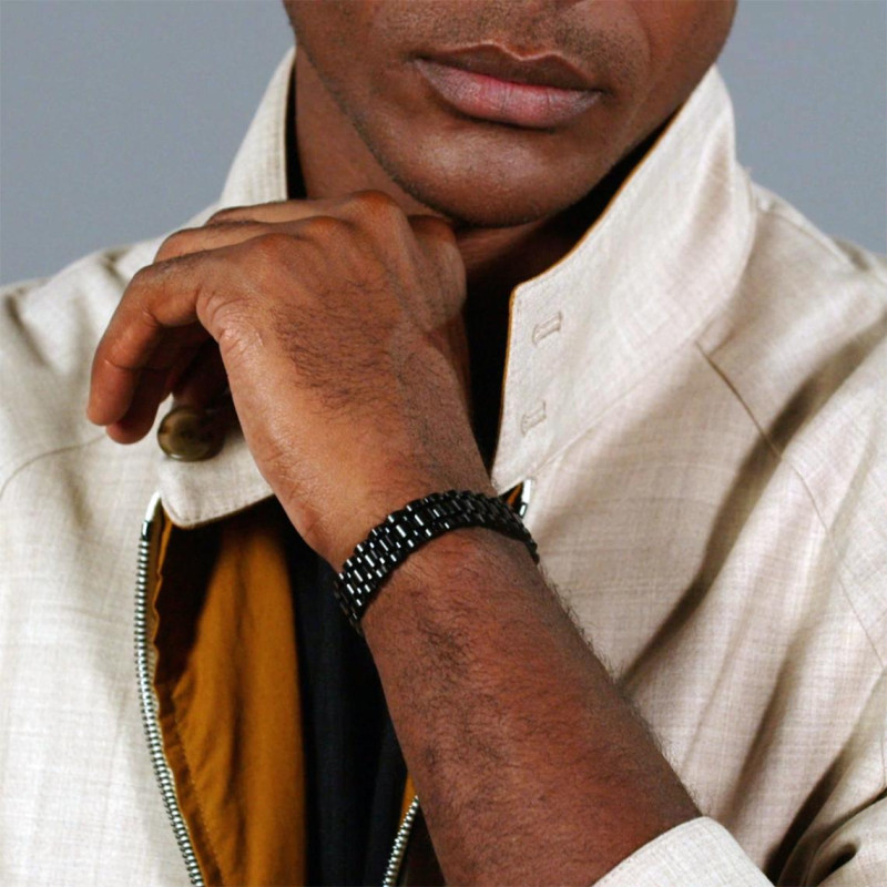 Voici le Bracelet Owan Acier Noir, une ode à la modernité et à l'élégance masculine. Confectionné en acier inoxydable noir, il séduit par sa finition polie et satinée, offrant un éclat subtil et raffiné. Avec une longueur ajustable de 17,50 cm à 19,00 cm, ce bijou s'adapte parfaitement à votre poignet, tandis que son fermoir magnétique assure confort et sécurité. Profitez en toute sérénité de sa garantie de 2 ans et laissez-vous séduire par ses lignes épurées.