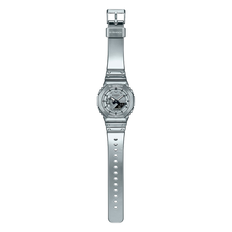 La Montre Casio G-Shock GM-B2100D-1A est l'exemple parfait de comment la robustesse peut rencontrer l'élégance. Dès le premier regard, cette montre capte l'attention avec son design métallisé et moderne. Le boîtier et le bracelet en acier inoxydable ajoutent une dimension de sophistication rarement trouvée dans les montres aussi robustes. La finition polie argentée ne passe pas inaperçue, combinant parfaitement le chic et le sportif. Mais ce qui la distingue véritablement, c'est sa capacité à résister aux chocs intenses, typique de la gamme G-Shock.