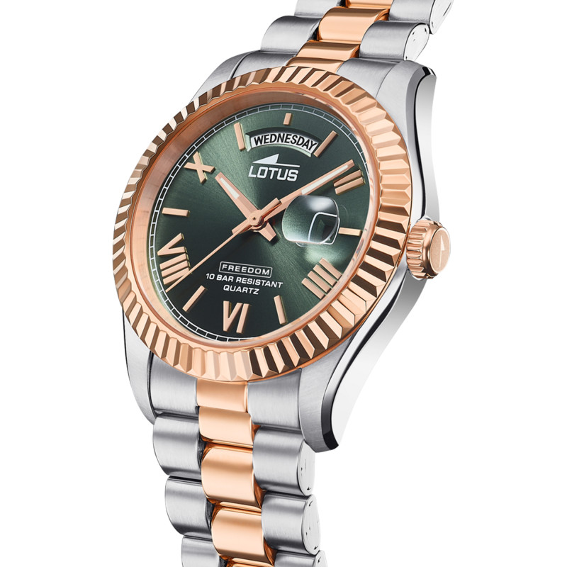 Lotus, symbole d'innovation et de qualité, vous présente la Montre Freedom Verte & Rosée, une pièce qui incarne l'élégance contemporaine tout en affichant un style audacieux. Chez 6sens, nous sélectionnons les montres qui attirent les regards et révèlent votre caractère unique. Plongez dans l'univers de cette montre qui mêle à la perfection le chic urbain et la robustesse.