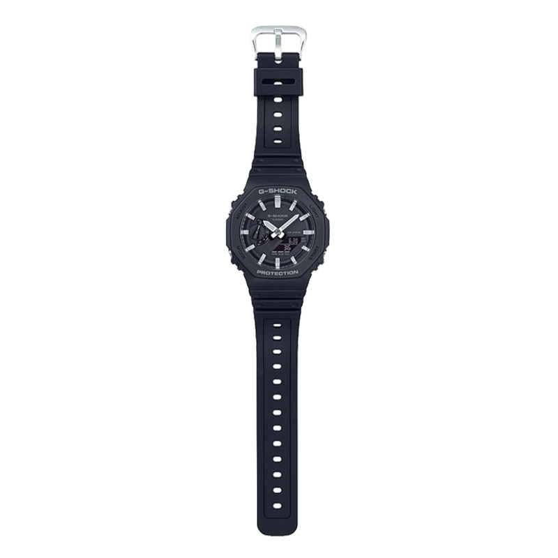 Avec son affichage analogique-numérique combiné, lire l'heure avec la Casio G-Shock devient un véritable plaisir. Les aiguilles blanches, qui contrastent élégamment avec le cadran noir, rendent la lecture ultra-facile en toute circonstance. De plus, grâce à ses indices luminescents, le temps reste lisible même dans l'obscurité totale. Cette fonctionnalité confère à la montre une polyvalence inégalée.