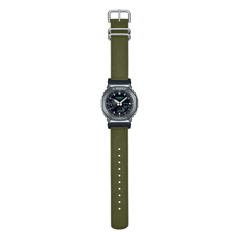 Plongez dans l'univers de la robustesse stylée avec la Montre G-Shock Nato GM-2100CB-3AER. Ce gardien du temps allie la résistance légendaire de Casio à un design urbain sophistiqué. Son boîtier octogonal en acier inoxydable et résine de 44,4 mm abrite un cadran noir protégé par un verre minéral, offrant une durabilité exceptionnelle. Le bracelet NATO vert ajoute une touche tendance tout en assurant un confort optimal. Étanche à 200 mètres et résistante aux chocs, cette montre est prête à vous accompagner dans toutes vos aventures, urbaines comme extrêmes.