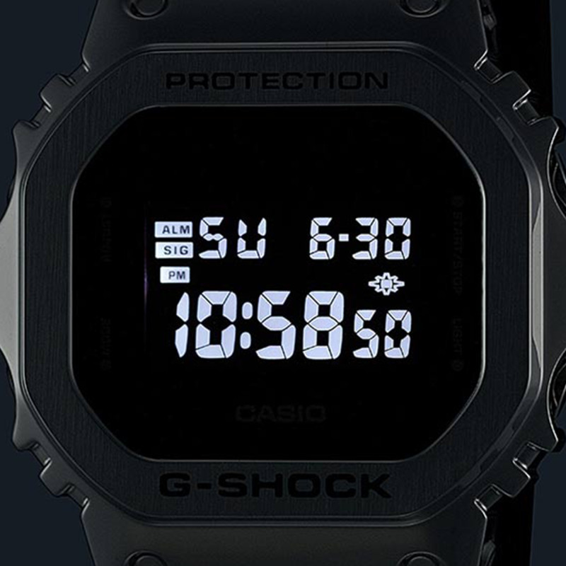 Un autre atout de la montre Casio G-Shock GM-5600U-1ER est son affichage numérique clair et lisible. Les chiffres arabes, rétroéclairés par la technologie LED, garantissent une lisibilité parfaite, même dans l'obscurité la plus totale. Que ce soit pour consulter rapidement l'heure ou pour utiliser le chronomètre et le compte à rebours, tout est conçu pour être visible et accessible d'une simple pression sur un bouton.