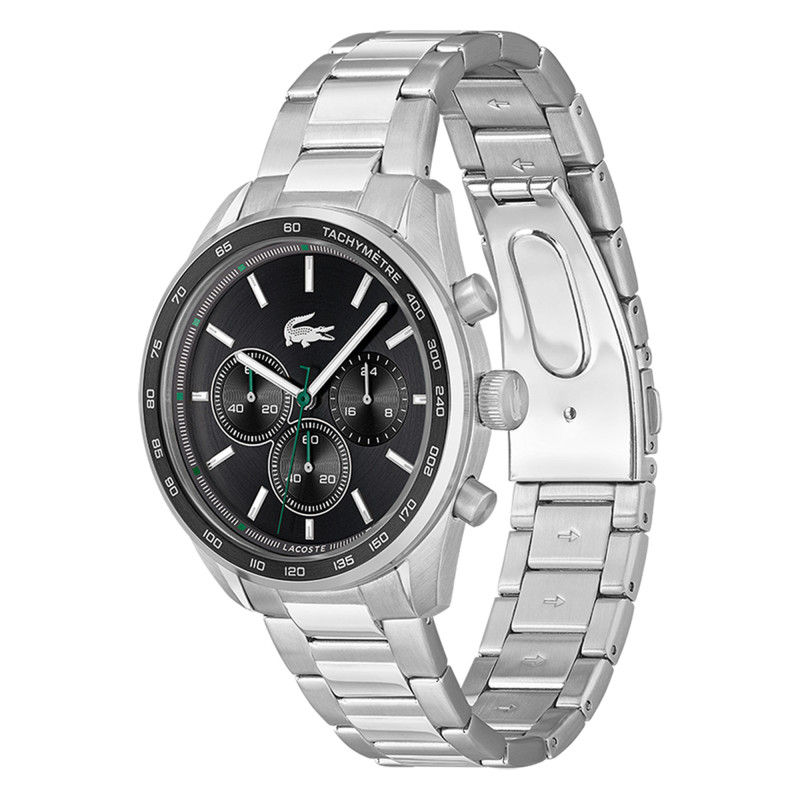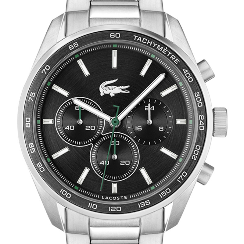 Cette montre est soigneusement fabriquée avec un boîtier en acier inoxydable et des finitions matte brossée et polie brillante qui lui confèrent une résistance et une allure moderne. Le cadran noir offre une lisibilité optimale grâce à ses aiguilles et index luminescents et son échelle tachymétrique intégrée dans la lunette en aluminium. Avec son mouvement à Quartz, elle assure précision et fiabilité, tandis que les fonctions chronographe ajoutent une dimension pratique pour les amateurs de technologie horlogère.