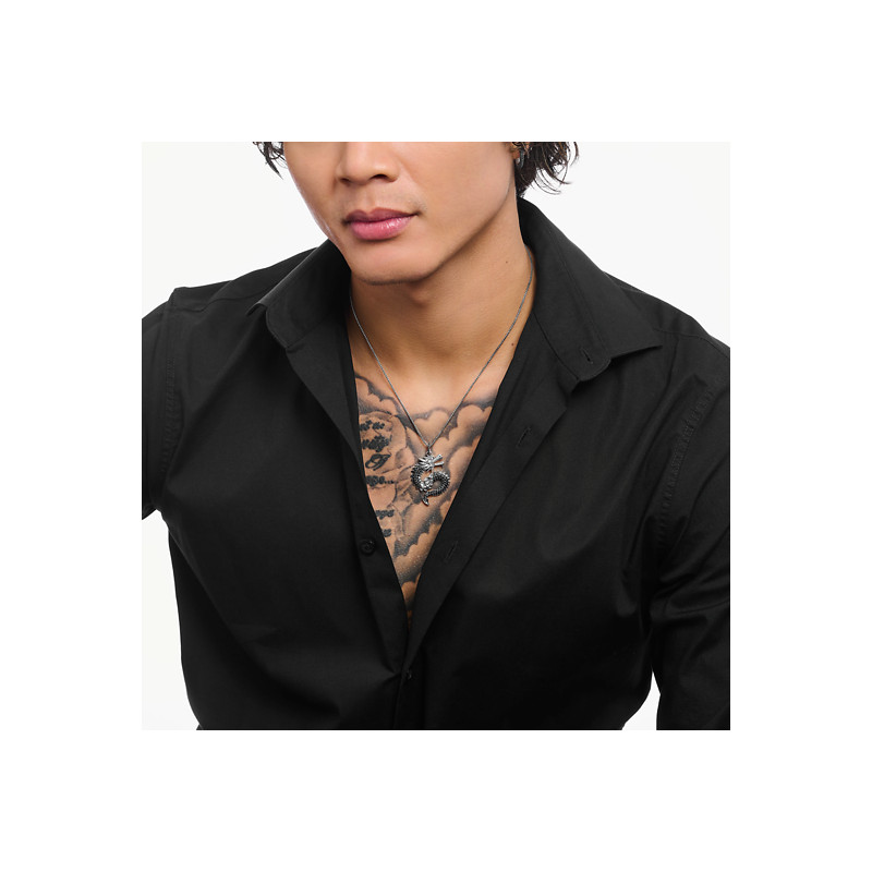 Découvrez le pendentif Dragon en argent 925, une création audacieuse où mythes et élégance se rencontrent. Ce bijou homme, à la fois puissant et envoûtant, est paré de pierres noires serties à grains, illuminant le regard de celui ou celle qui le porte. Le pendentif, aux dimensions généreuses, affiche fièrement une largeur de 28,60 mm et une hauteur de 44,00 mm, embrassant votre cou d'une aura mystique et protectrice. La qualité de l'argent massif 925/1000, finement polie, confère une brillance éternelle à cette œuvre intemporelle.
